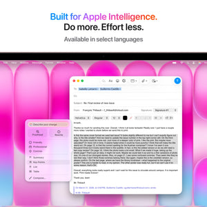 •   BUILT FOR AI — Apple silicon, and every major component that powers it, is designed to efficiently run on-device AI activities. And Apple Intelligence helps you write, express yourself and get things done effortlessly with groundbreaking privacy protections at every step.