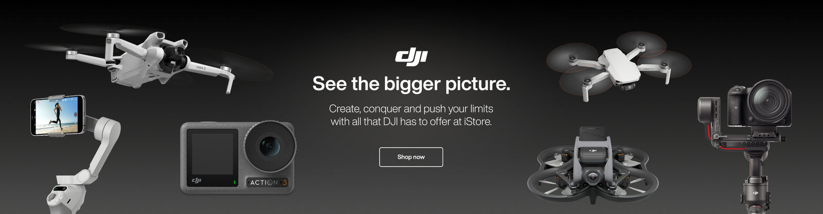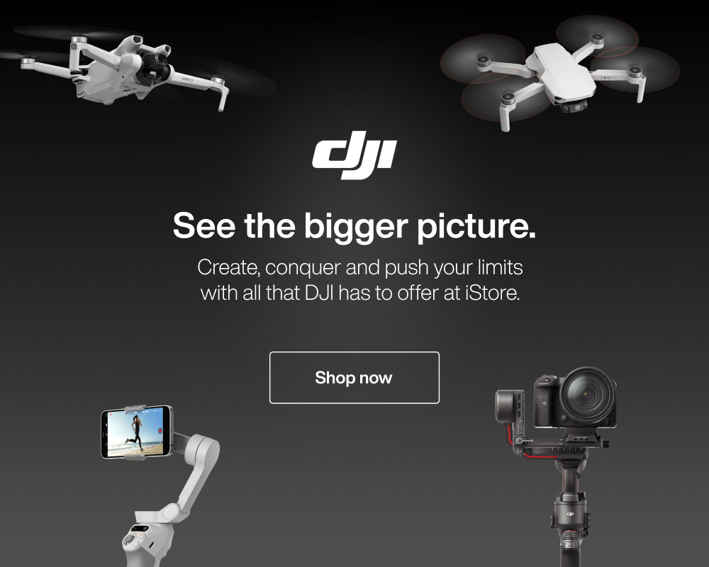 DJI are the market leaders in easy-to-fly drones and aerial photography. Drones like the Mavic 3, Mini 3 Pro, Air 2S and the Mini 2 SE are the standard in consumer drone technology. Capture moments from the ground with easy-to-use handheld imaging devices like the Osmo Series and Ronin Stabilisers. Redefine flying with the Avata immersive flying experience.
