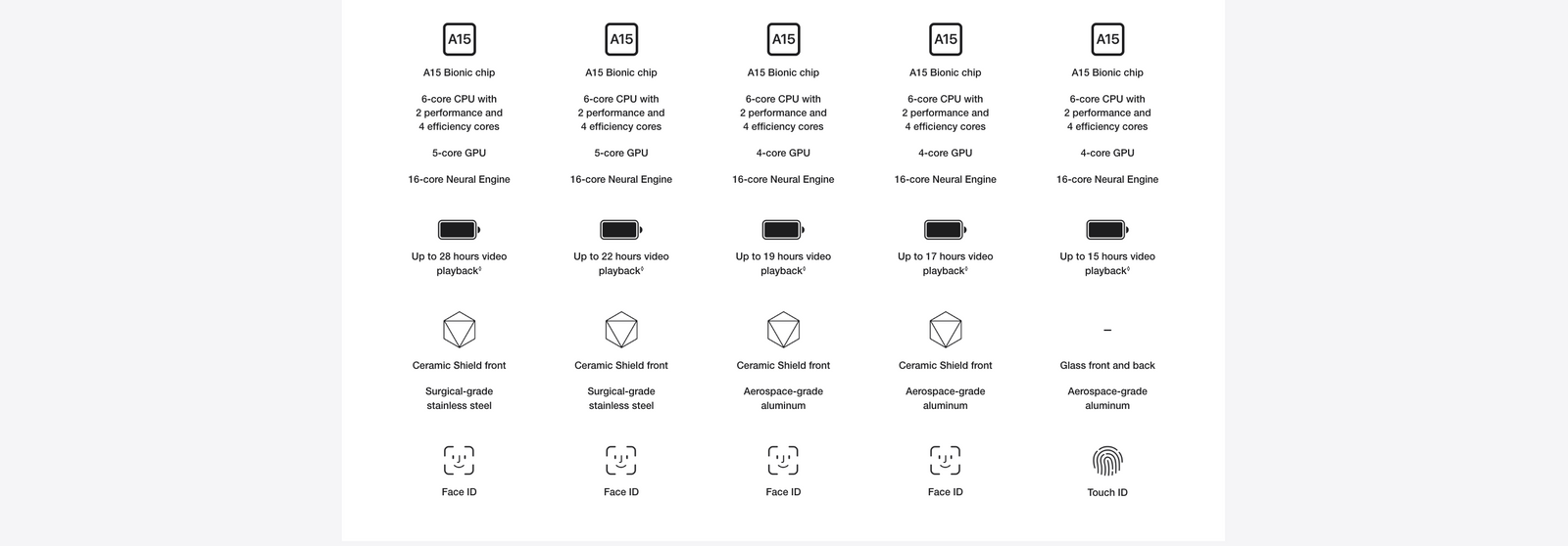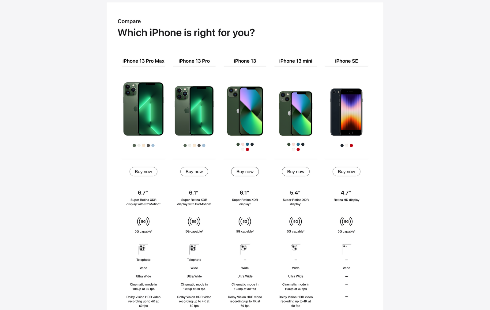 Display: The display has rounded corners that follow a beautiful curved design, and these corners are within a standard rectangle. When measured as a standard rectangular shape, the screen is 5.42 inches (iPhone 13 mini), 6.06 inches (iPhone 13, iPhone 13 Pro), or 6.68 inches (iPhone 13 Pro Max) diagonally. Actual viewable area is less.