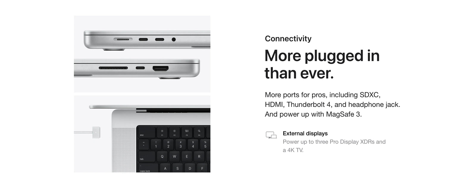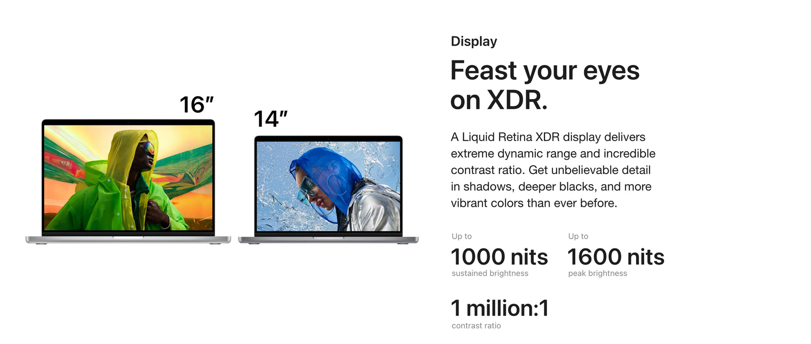 Display: Screen size is measured diagonally. The display on the 14-inch MacBook Pro has rounded corners at the top. When measured as a standard rectangular shape, the screen is 14.2 inches diagonally (actual viewable area is less). The display on the 16-inch MacBook Pro has rounded corners at the top. When measured as a standard rectangular shape, the screen is 16.2 inches diagonally (actual viewable area is less).